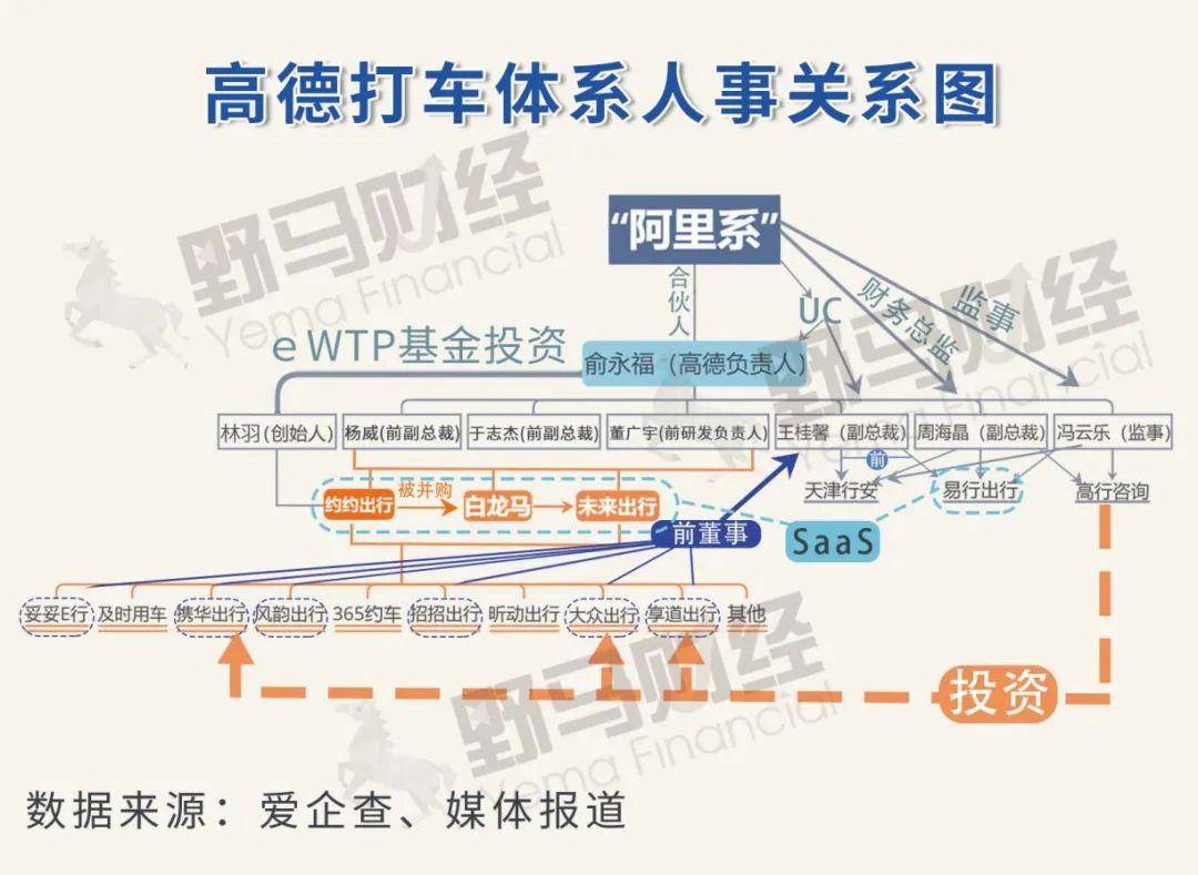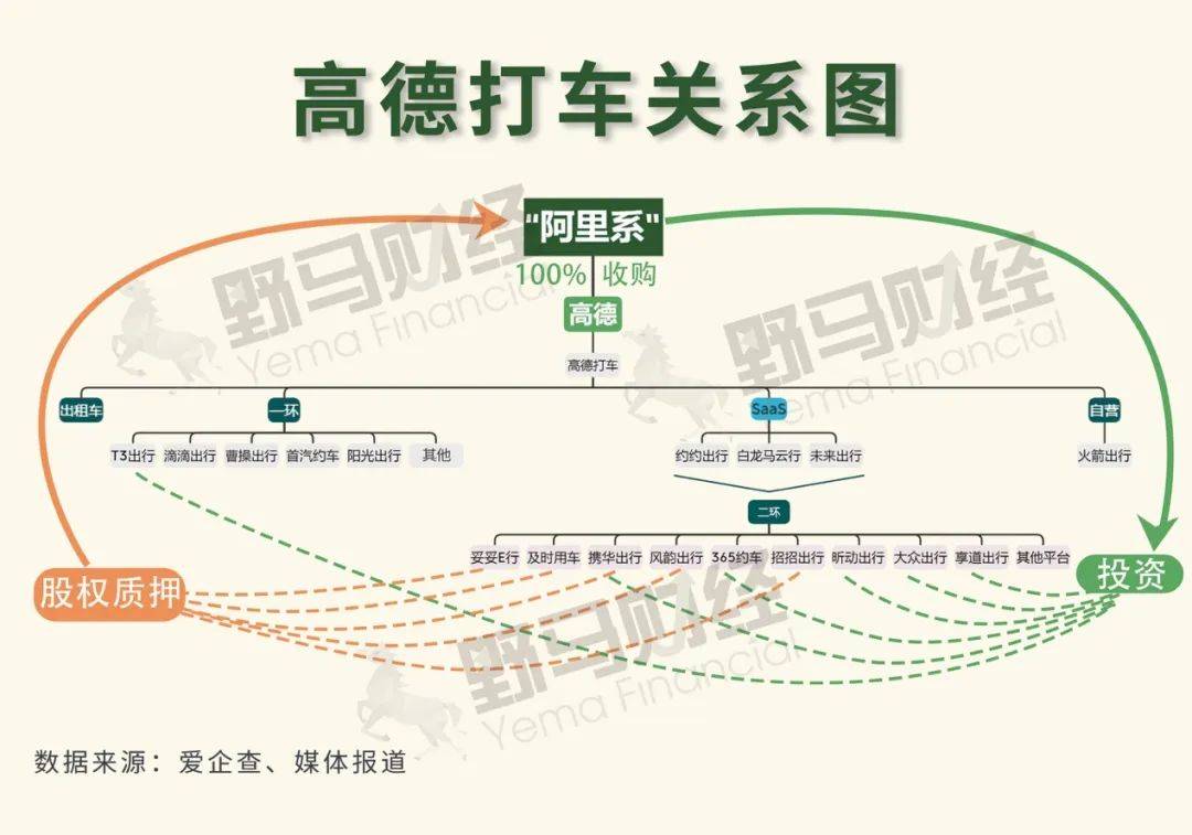 简言之,2014年被阿里全资收购的高德,在2017开发了高德打车这个产品,通过高德前高管创业的SaaS公司接入超过155家中小网约车平台,而“阿里系”公司通过股权质押、投资,与高德打车平台上的核心运力服务商及重要合作伙伴,结成了更为紧密的关系,高德高管还曾一度担任过这些公司的董事。