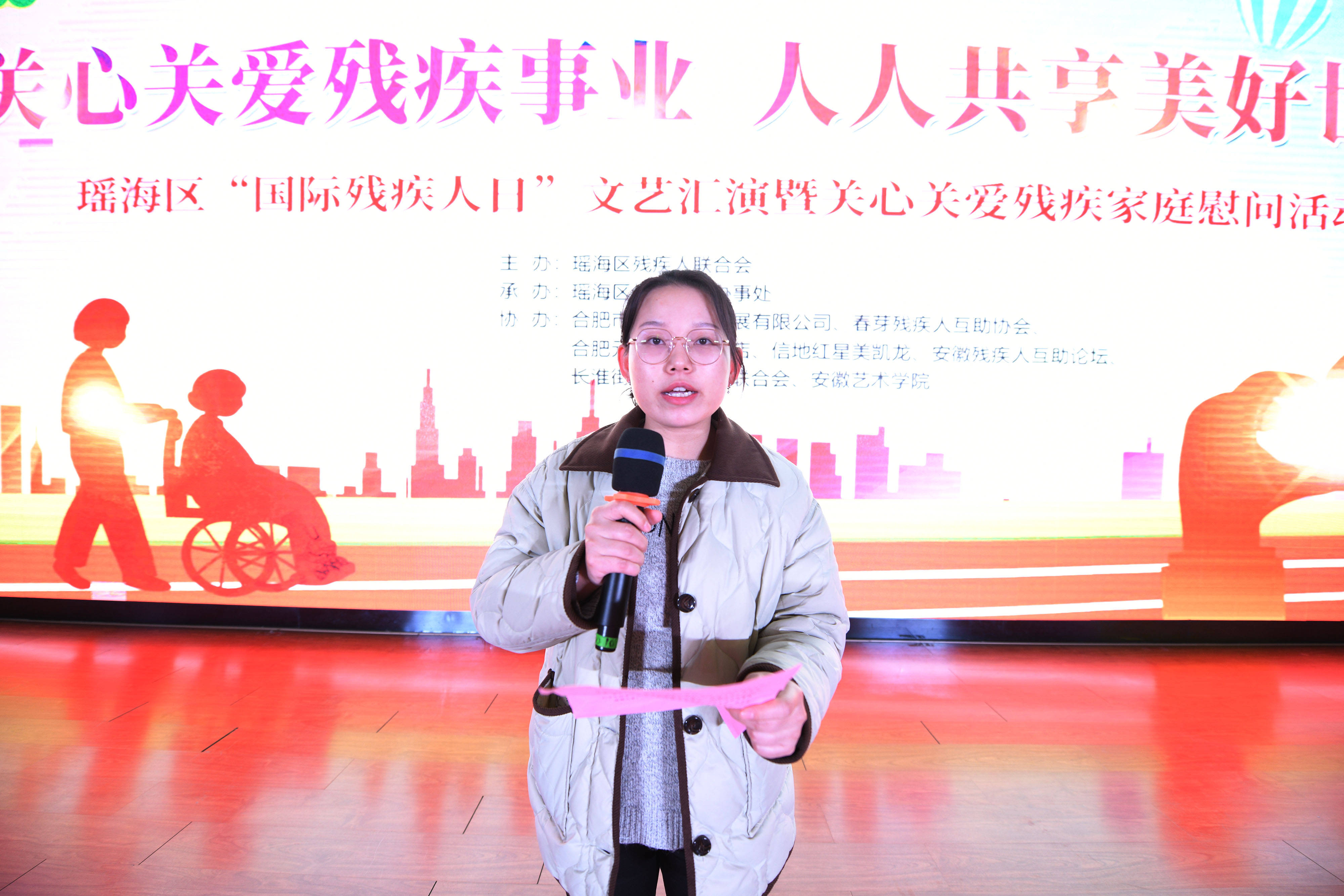 2023年12月1日下午,由合肥市瑶海区区残联主办、长淮街道承办的“关心关爱残疾事业 人人共享美好世界”瑶海区“国际残疾人日”文艺汇演暨关心关爱残疾家庭慰问活动在信地红星美凯龙举办。合肥市残联办公室主任洪刚,区残联副理事长袁康,区关工委副主任王骏,长淮街道人大工委主任林弟昌,街道党工委委员、办事处副主任杜飞等参加活动。活动当天现场还设置了义诊展台,受到辖区居民欢迎。
