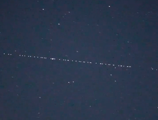 2022年,日本一天文摄影师凌晨时分拍到了夜空过境的星链G4-20卫星