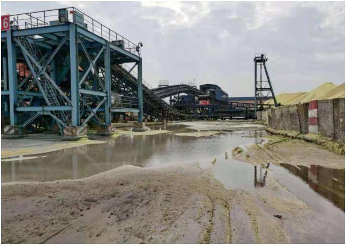 北部湾港防城港码头有限公司硫磺堆场区域污水横流,pH值低至3.48,化学需氧量高达4808毫克/升。