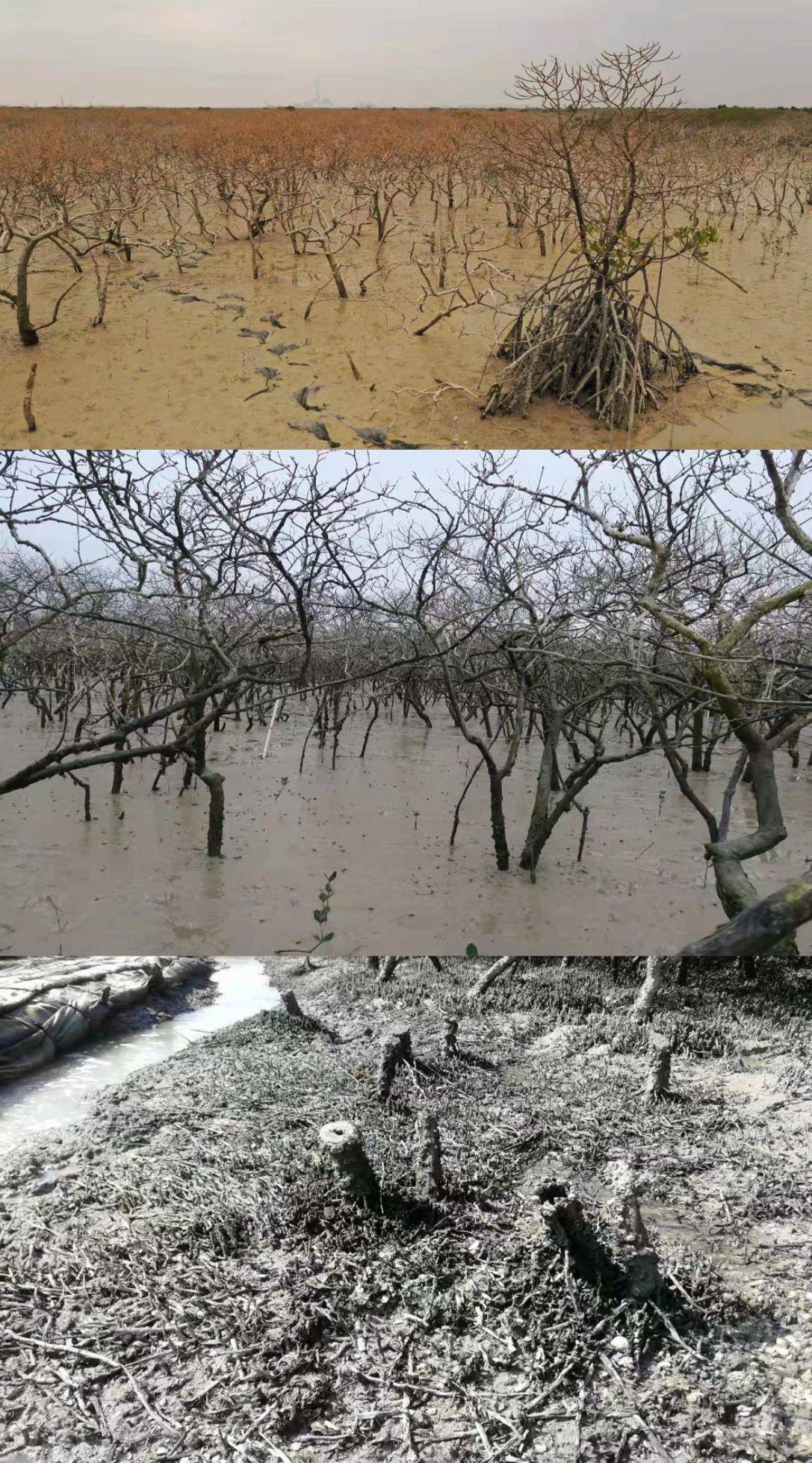东港区榄根作业区施工致大面积红树林死亡,部分红树林甚至被直接砍伐。 本文图均为 中华人民共和国生态环境部网站 图