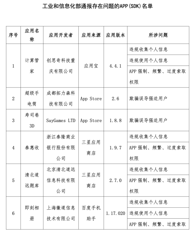 11月30日,工信部网站发布《关于侵害用户权益行为的APP(SDK)通报(2023年第8批,总第34批)》(下称《通报》),在22款APP及第三方软件开发工具包(SDK)中,浙江泰隆银行(下称“泰隆银行”)的聚合收款APP“泰惠收”被点名。