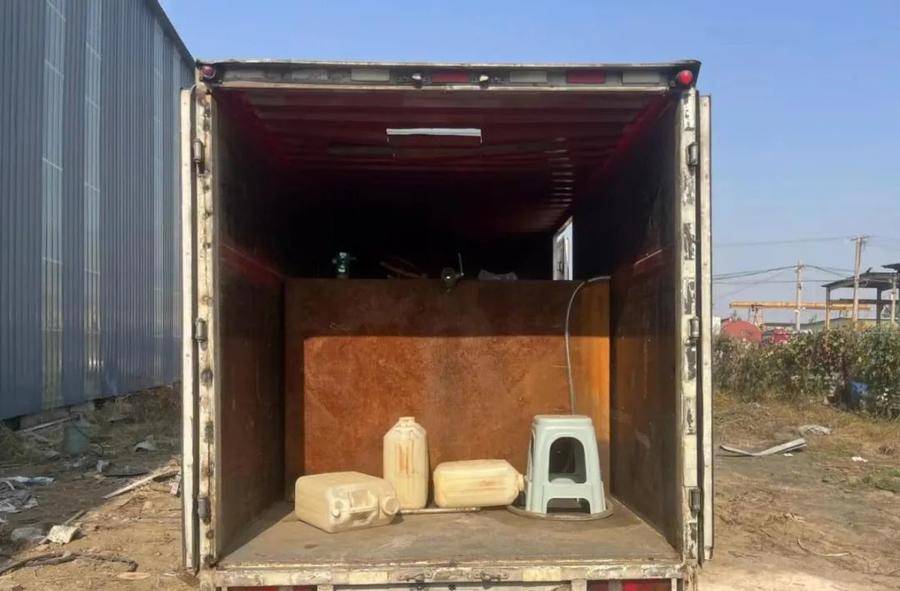 经过大范围走访摸排,办案民警刘鹏、姚通达发现输油管道沿线附近一破旧厂房仍在使用当中,随即展开调查。在对厂房所有人询问中了解到,此场地租赁人为陈某乐,其经常驾驶一白色解放牌箱货车出入该院落,此行为引起了民警的注意。