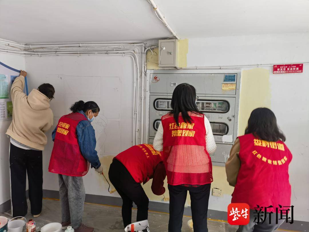 彩绘现场,专业画师用画笔在楼道墙面上勾勒出一幅幅精美的画作,“红色管家”志愿者们协同老师进行打底、涂色。几天下来,一个个小楼道“穿上了新衣”。居民们路过都要多停留一会儿,拍个照、合个影,无比享受这个美丽的小空间。