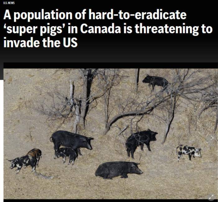 报道称,“超级猪”目前很有可能南下进入美国,包括明尼苏达州、北达科他州以及蒙大拿州等美国北部多州正严阵以待防止“超级猪”入侵。