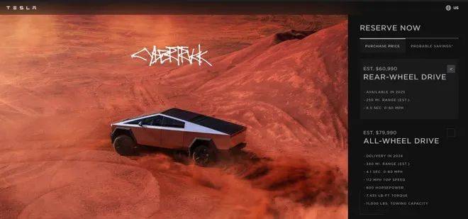 特斯拉全驱版和Cyberbeast版将于2024年交付,最便宜的后驱版将于2025年交付。据外媒Teslarati援引三方机构统计,目前Cybertruck的订单量已经超过200万辆。未来一段时间,Cyberturck 的产能将十分有限。特斯拉此前预计2024年能生产12.5万辆Cybertruck,相当于特斯拉2023年销量目标180万辆的7%。马斯克计划在2025年将Cybertruck产能提升至25万辆。也就是说,从2019年11月发布至今,最早下订单的消费者可能要等6年才能收到车。