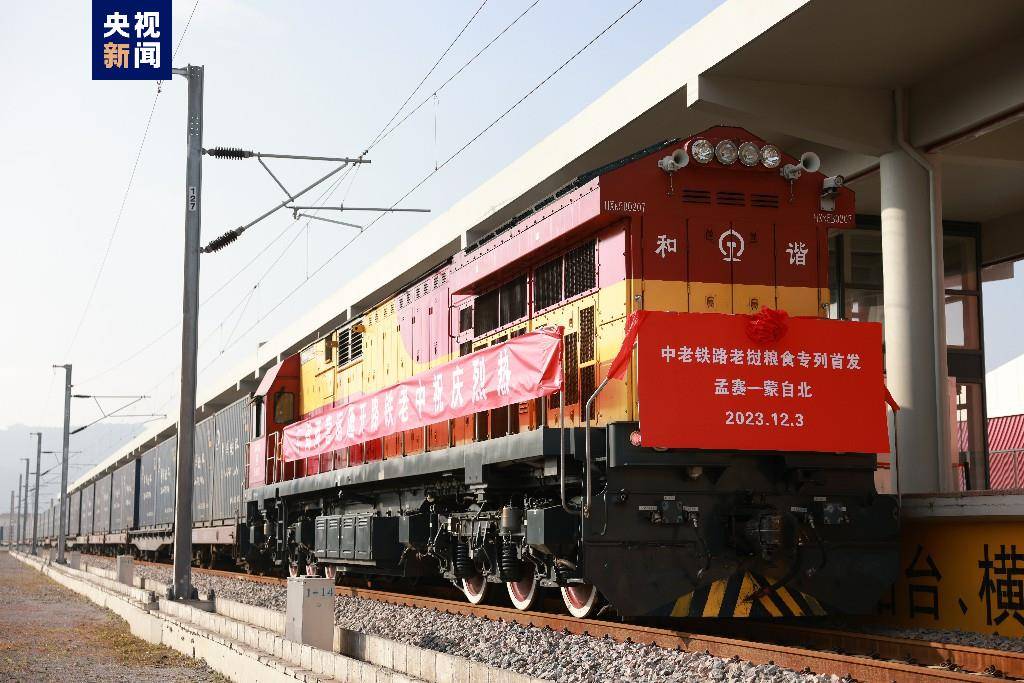 据央视新闻客户端消息,12月3日9点49分,“中欧+澜湄快线”国际货运专列和中老铁路老挝粮食专列,同时在中老铁路磨憨站首发,运营满两年的中老铁路黄金大通道与中欧班列国际物流大通道实现有效衔接,切实打通了“东南亚-昆明-成都-欧洲”的铁路亚欧大通道。
