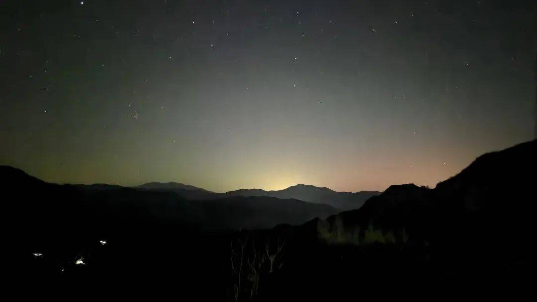 12月1日晚19点57分,北京百花山西北部灵山方向,百花山国家级自然保护区职工杨南拍摄到罕见的极光现象(照片中红色的部分)。