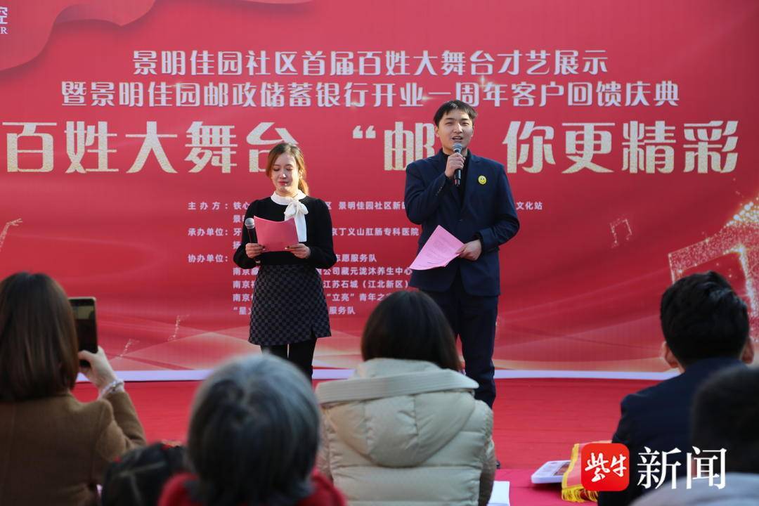 现场活动由景明佳园邮政储蓄银行李贺澄,南京藏元生物科技有限公司薛晴雯共同主持。