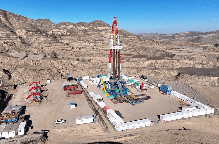 这是11月30日在甘肃省庆阳市环县拍摄的洪德油田钻井施工现场(无人机照片)。新华社发(长庆油田宣传部供图)