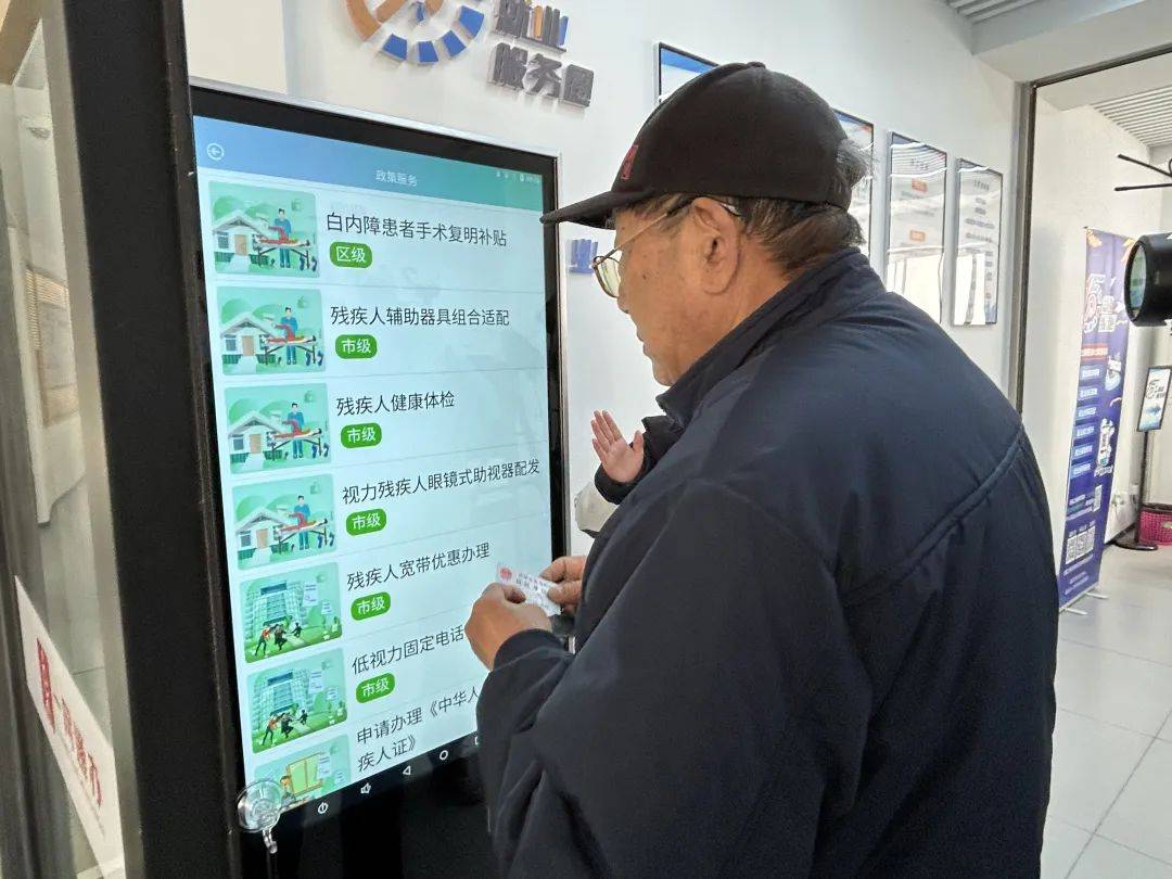 预约爬楼机、阳光巴士、家电维修……使用灵敏的触碰杆浏览科技助残机屏幕,关于残疾人的生活服务、辅具服务、技能培训、就业服务等20多项服务的信息尽在掌握。最近,视障患者王先生就通过这台机器,新配了一副眼镜式助视器,“以前还要来社区找人咨询,现在有这个智能化机器以后,我们平时来刷一下身份证,就可以了解相应的视力残疾政策。”
