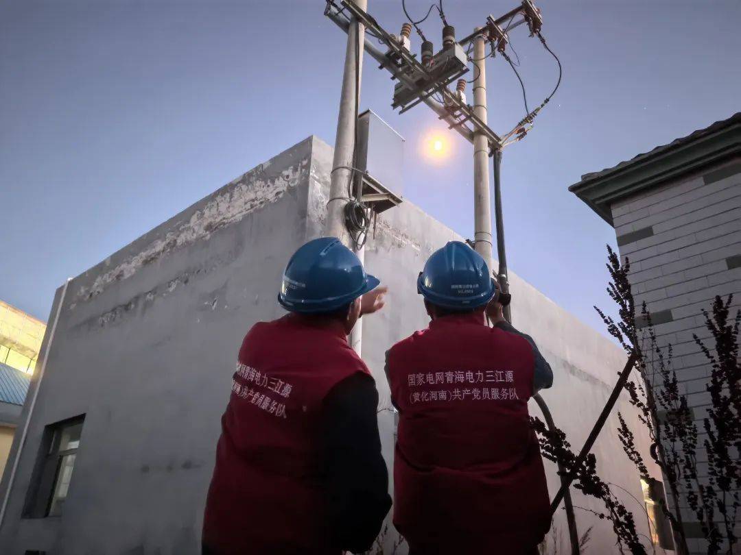 近日,在青海省黄南藏族自治州河南蒙古族自治县10千伏优二路太阳能示范村001号公网变现场,国网青海电力三江源(黄化河南)共产党员服务队队员余宝昌和李存福正在对变压器及设备进行夜间巡视及测温,保证及时掌握设备健康状态,确保迎峰度冬期间群众用电可靠。