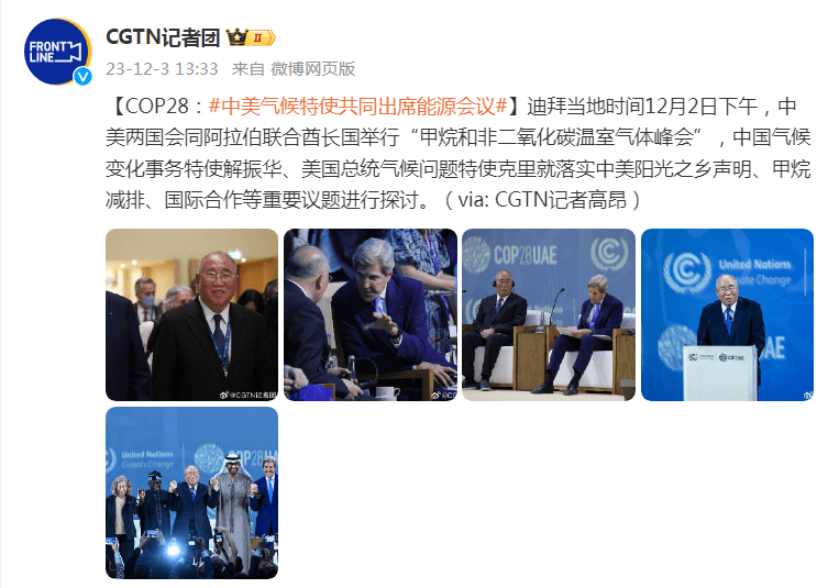 原标题:COP28:中美气候特使共同出席“甲烷和非二氧化碳温室气体峰会”