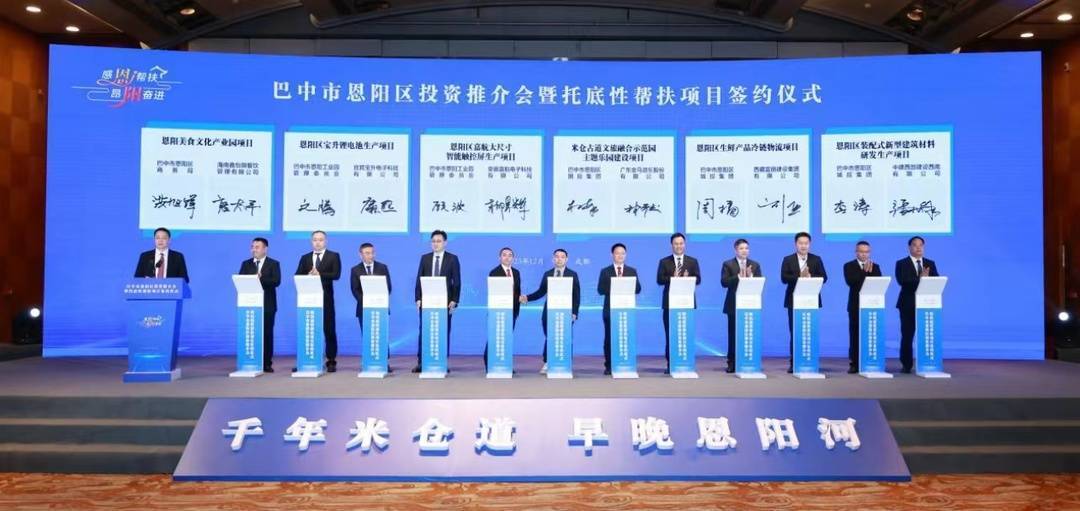 12月1日,以“感恩帮扶·昂阳奋进”为主题的巴中市恩阳区投资推介会暨托底性帮扶项目签约仪式在成都举行。四川省商业投资集团、宜宾宝升电子、西藏富丽集团、四川民福记食品等50家知名企业代表参加活动。