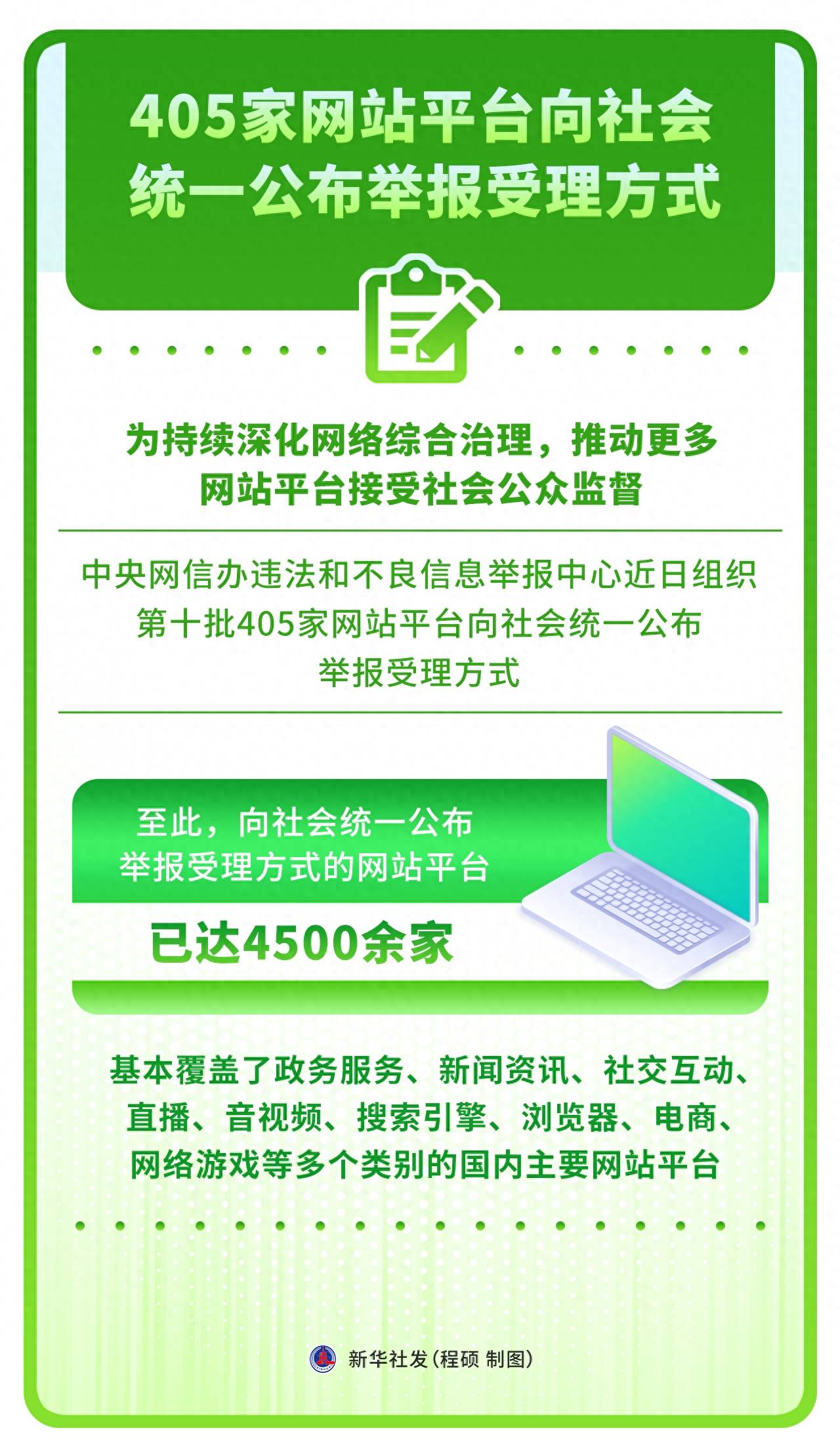 原标题:(图表)[社会]405家网站平台向社会统一公布举报受理方式
