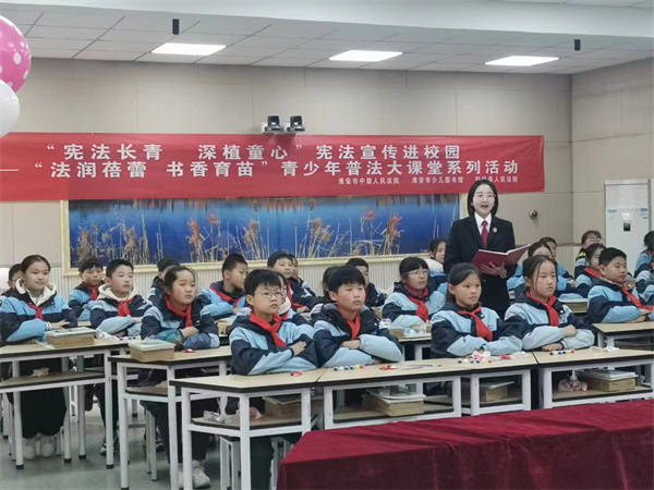 青少年普法大课堂依托“法润蓓蕾 书香育苗——青少年普法教育基地”“青少年法治研学基地”为广大青少年搭建一个识法、学法、懂法的教育平台,开展模拟法庭研学、普法教育讲座、法治教育宣传展览、线上法律知识竞赛等普法教育活动,通过构建“阅读+普法”的创新理念,实现跨圈联动,共享优势资源,形成工作合力,引导青少年养成自律自强、自重自爱、积极向上的心理素养和优良品格。(刘梦莹 滕招义 陈靖)