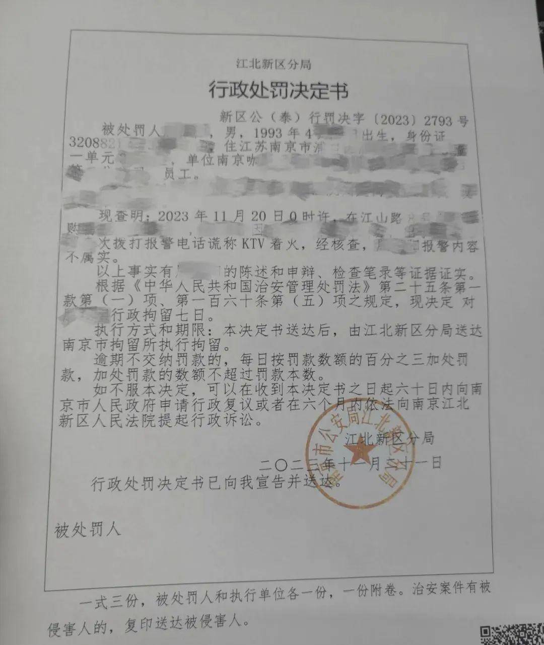 该报警男子在派出所承认,自己谎报火警,最终,南京市公安局江北新区分局经调查取证,根据《中华人民共和国治安管理处罚法》相关规定,对该男子处以行政拘留七日处罚。