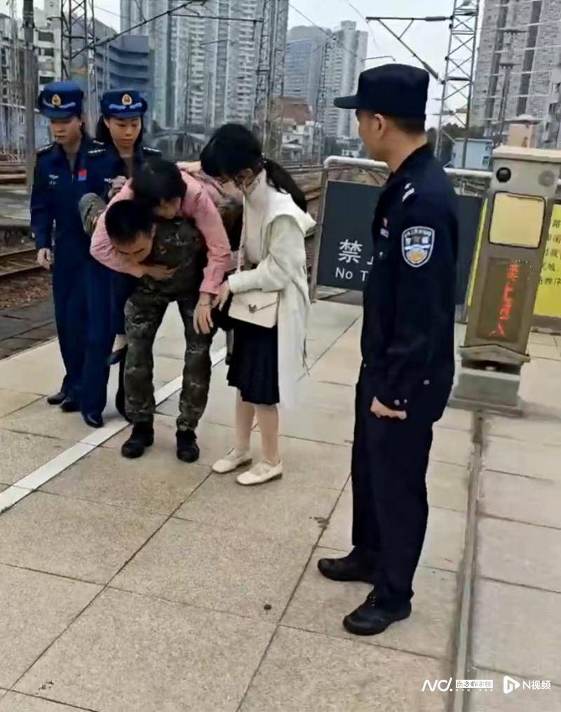 随后在铁路公安、铁路客运部门的工作人员、同行战友的多方协助下,田兴壮将老人背到站台。得知铁路工作人员已经联系好了120救护车辆之后,田兴壮便和战友离开了。