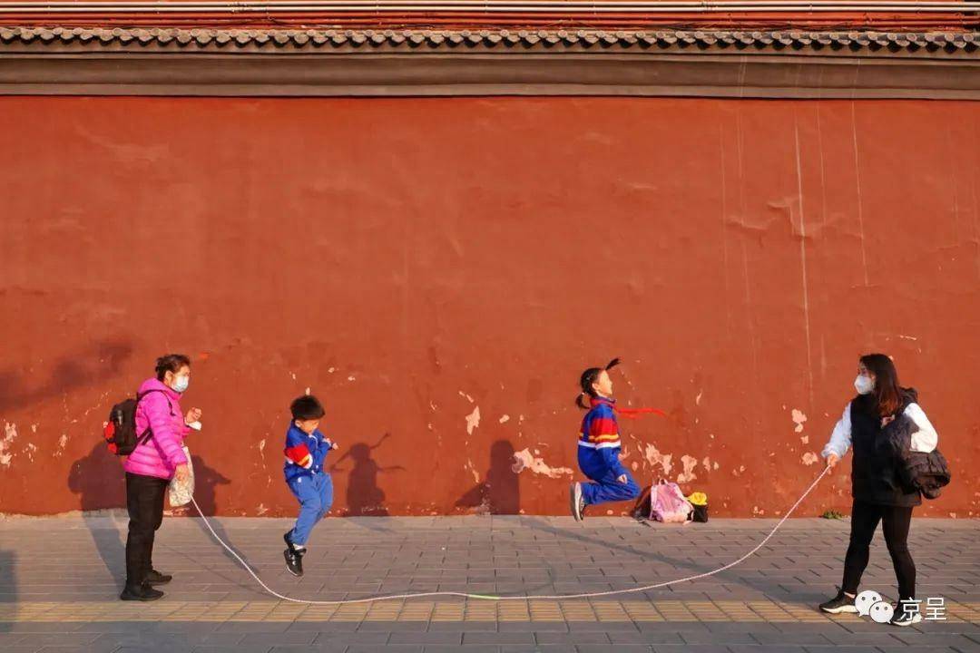 雍和宫古老的红墙下,刚刚放学孩子们在冬日暖阳下快乐地跳绳。杨建国 摄