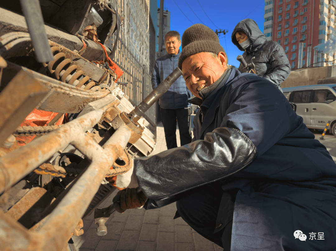 万泉庄南社区,经验丰富的修车师傅正在帮社区居民维修车辆,为大家提供暖心的便民服务。寇洵 摄
