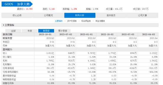 同期,加拿大鹅归母净亏损910万加元,同比下滑464.00%。