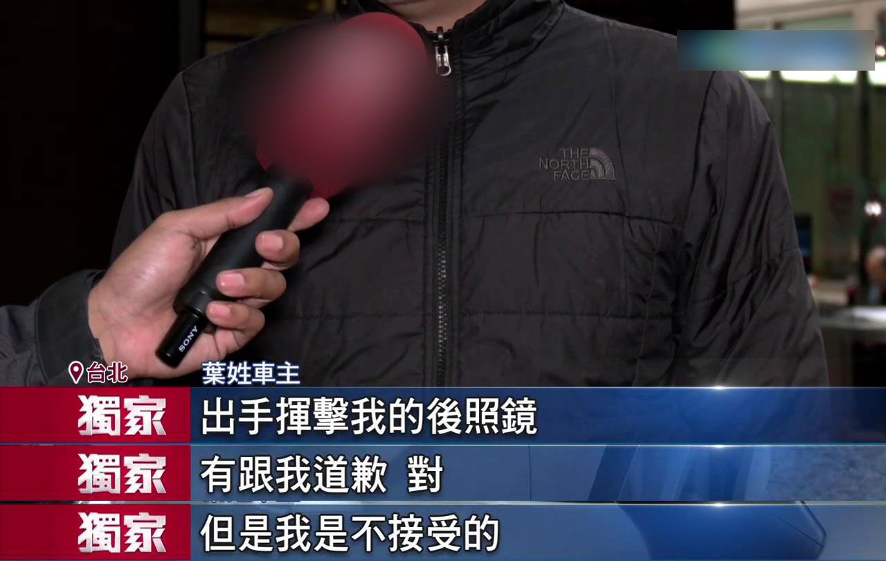 车主叶某接受台媒采访,指李博翔当天故意打坏后视镜,他有道歉但是自己不接受。