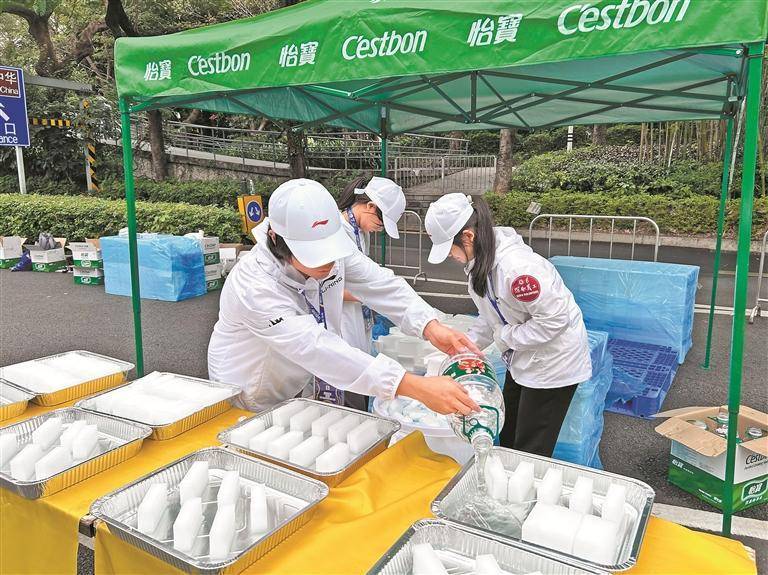 作为志愿者,无论是在台前还是幕后,无论是迎来送往还是默默值守,都是这场盛会中独一无二的风景。与往年一样,深职大志愿者凌晨5点前要到岗准备。前一天晚上,39名志愿者骨干通宵分发了140箱饮用水、2364份能量包等餐食及物资,并配合组委会工作人员做好28辆接送车辆的安排以及人员协调等工作。比赛当天凌晨4点,整装待发的深职志愿者身着统一的白色志愿者服装,列队登车、准时出发。