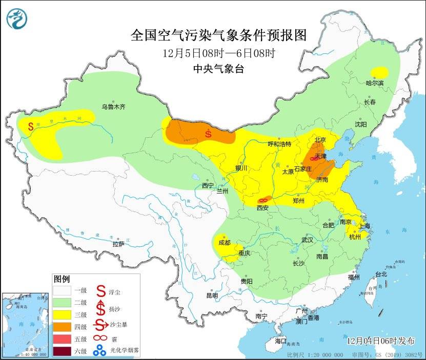 另外,4日至5日,华北中南部、黄淮、汾渭平原等地大气扩散条件较差,有轻至中度霾天气,局地短时重度霾。5日夜间起,受冷空气影响,上述地区大气扩散条件逐渐好转。此外,4日至6日,西北地区东部多沙尘天气,后期黄淮等地将受沙尘传输影响。