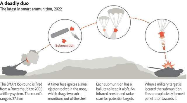 (乌军发射末敏弹打击俄军坦克的示意图)