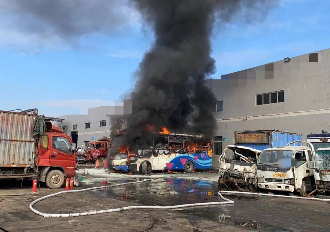 致使1辆报废客运车和旁边1辆报废搅拌车烧损