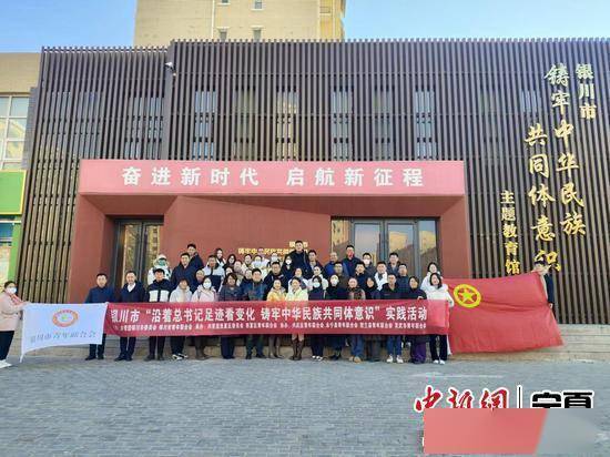 青联委员们在银川市铸牢中华民族共同体意识馆前合影。马瑞丰 摄