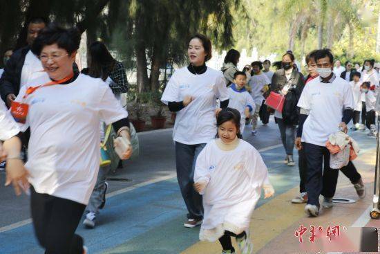 中新网福建新闻12月3日电 随着“砰!”的一声发令枪响,来自福建省智协、漳州市智协、东山县特殊教育学校的100余名智力残疾儿童及家长和100余名健康儿童及家长手拉着手从起跑线出发,在漳州东山彩蝶湾的彩虹跑道上向终点线奋力奔跑。