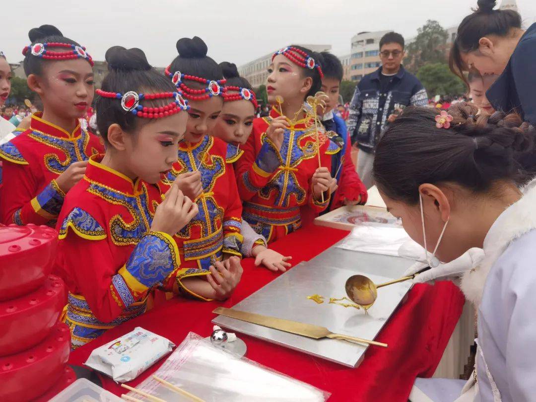 中央音乐学院高级教师、全国艺术水平测评考官、古筝老师黄千羽和她的学生们共同演奏了古筝曲《采菊东篱下》。伴着古筝悠扬的曲调,陈琳老师现场制作糖画,孙高雄、甄宏两位老师带着孩子们挥笔书法、描摹作画,他们的展示将本次活动再一次推向了高潮。