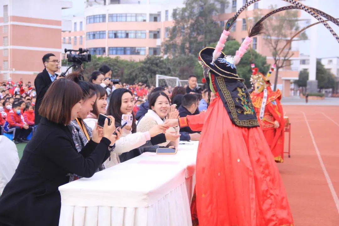 来自郫都区振兴川剧团的郭光富、谭红英、唐春菊为师生带来川剧瑰宝——变脸。现场的同学和家长看得津津有味,一次次吐火、一次次脸谱变换,将活动气氛推向了高潮,现场掌声、欢呼声经久不息。