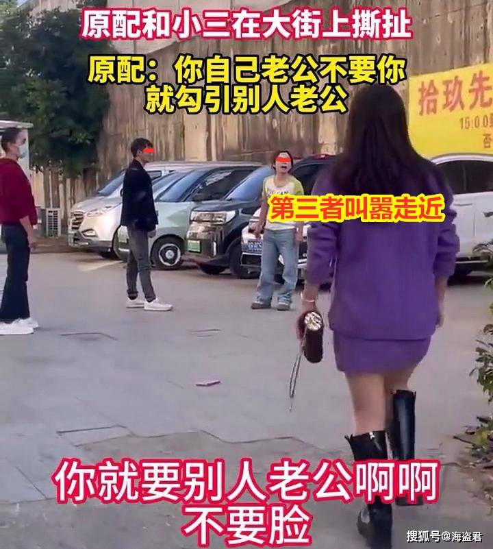 双方隔得并不远,妻子骂累了丈夫,转身对着第三者骂了起来。