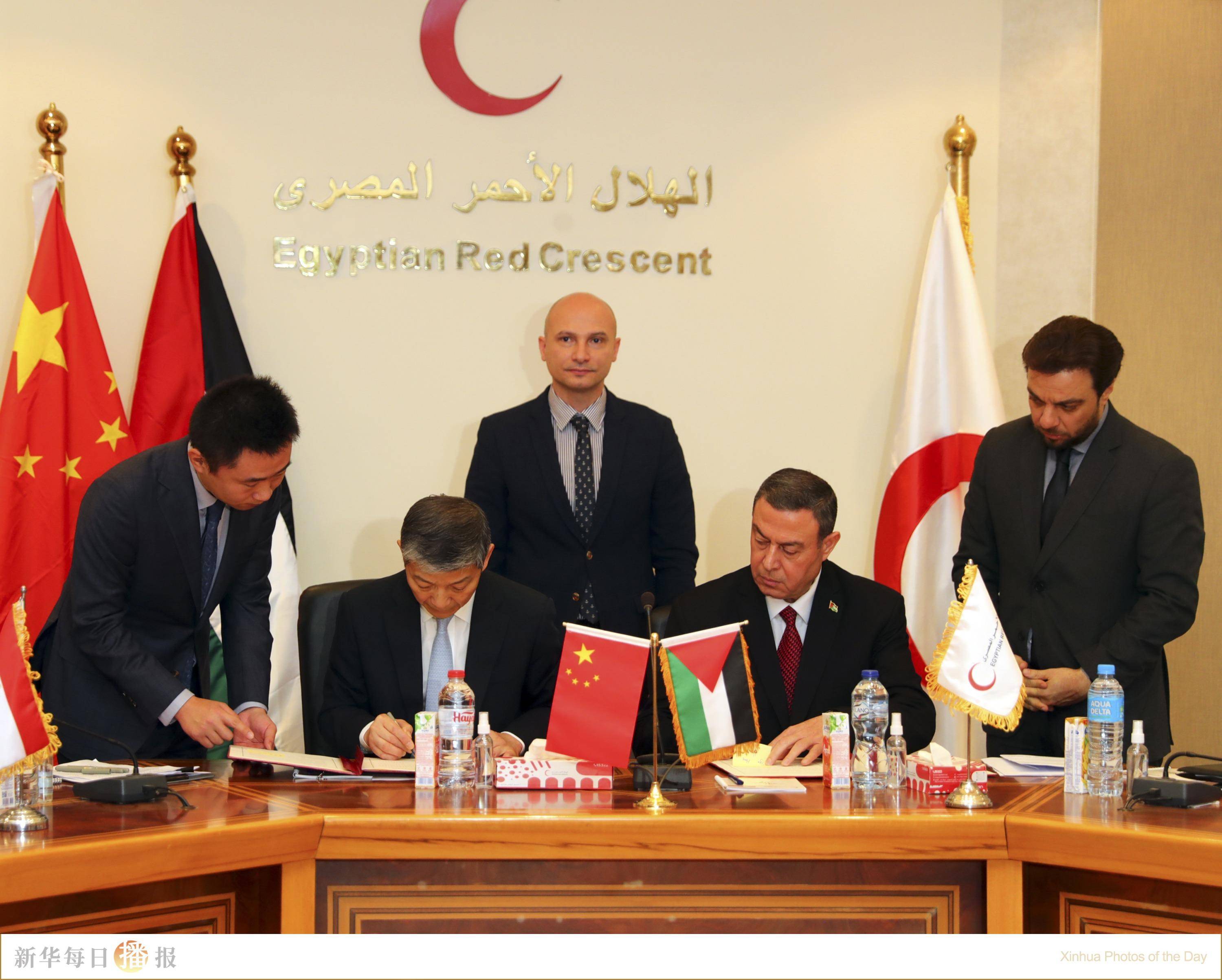 中国向加沙提供紧急人道主义物资援助交接证书签字仪式在开罗举行