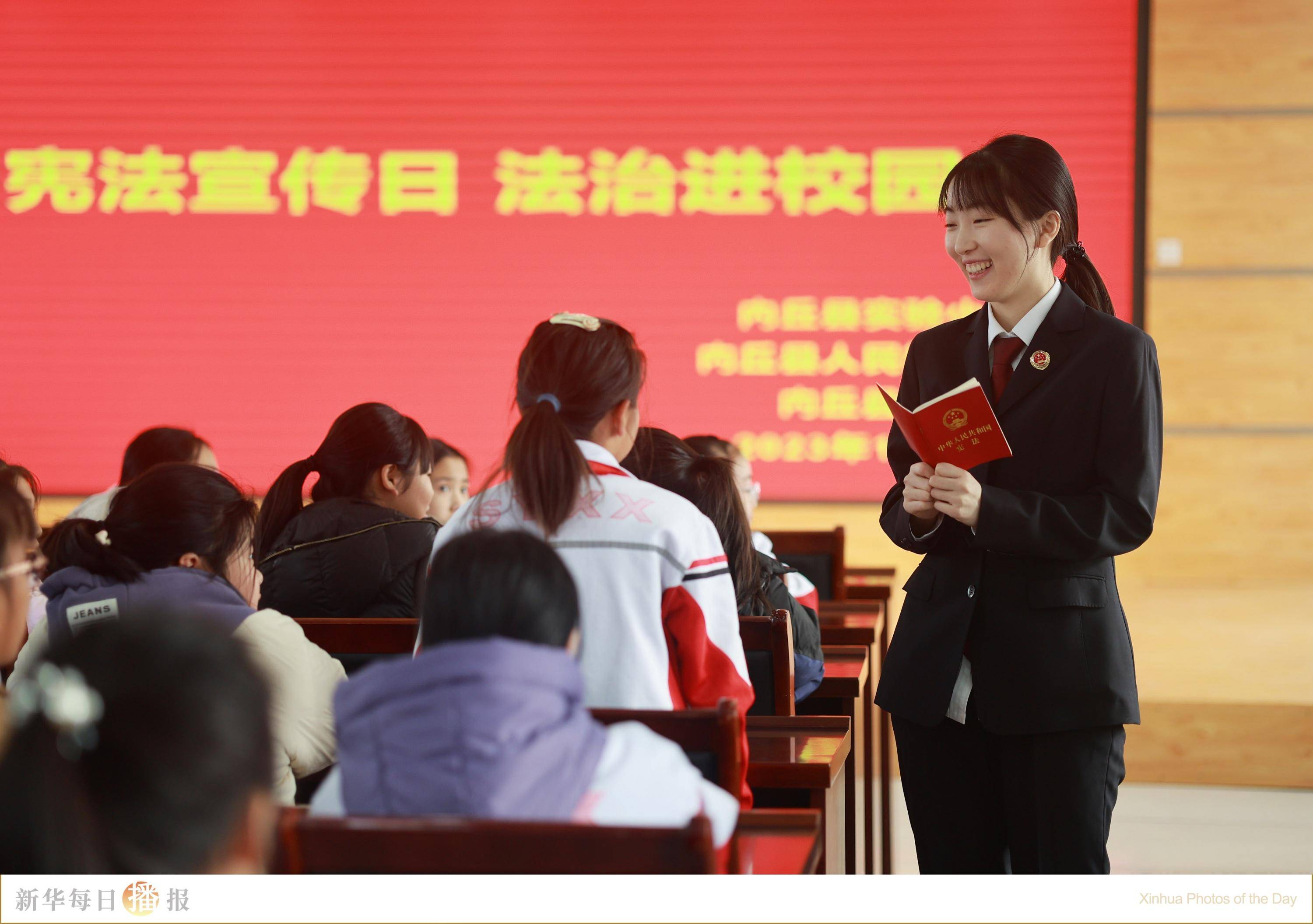 12月4日,在河北省邢台市内丘县实验小学,检察院工作人员与学生互动学习宪法知识。当日是第十个国家宪法日,各地举办多种形式的活动弘扬宪法精神,提升公民法治素养。