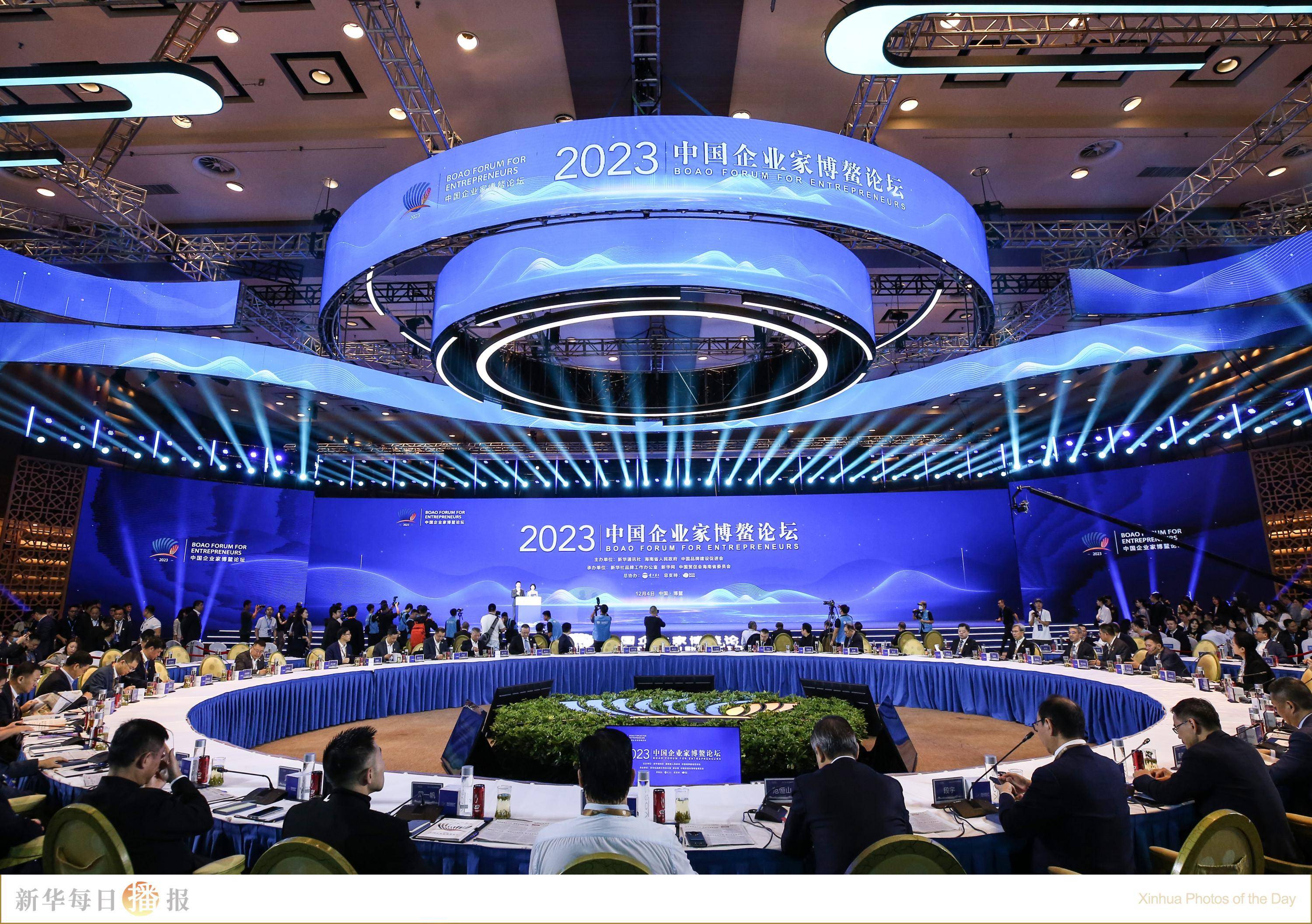 12月4日,2023中国企业家博鳌论坛主论坛现场。当日,以“聚焦新质生产力,增强发展新动能”为主题的2023中国企业家博鳌论坛主论坛在海南省琼海市博鳌镇举行。本届论坛由新华通讯社和海南省人民政府、中国品牌建设促进会等联合主办。