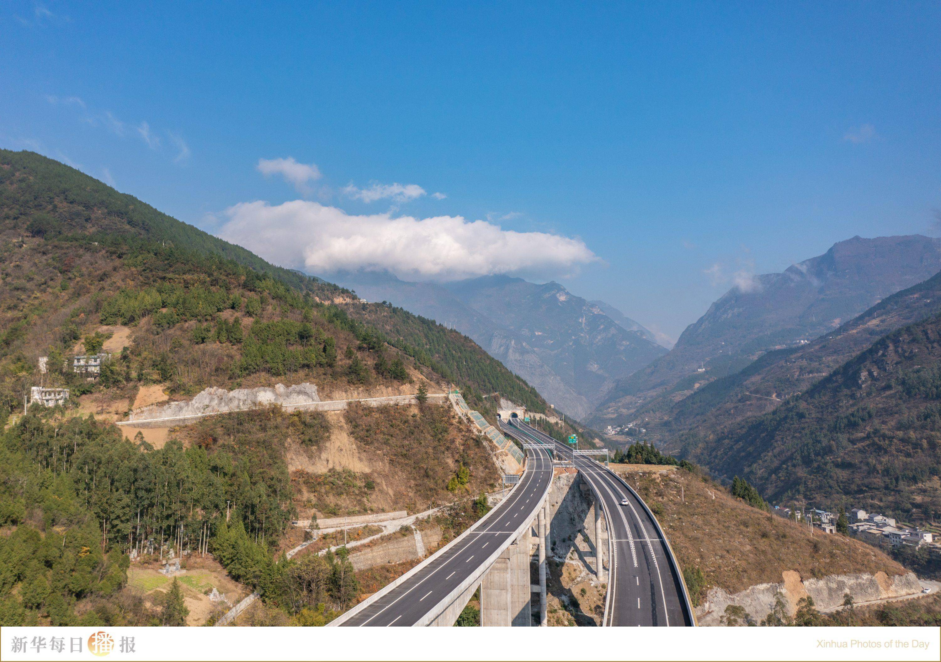 12月4日,在重庆市巫溪县拍摄的巫镇高速(无人机照片)。当日,重庆巫溪至陕西镇坪高速公路正式建成通车。巫镇高速是重庆首条直接连接陕西的高速公路,建成通车后,重庆市巫溪县至陕西省安康市镇坪县的车程从3个多小时缩短至1小时以内。