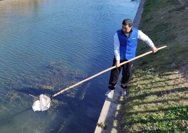 他以自己的实际行动爱护着身边的河道。