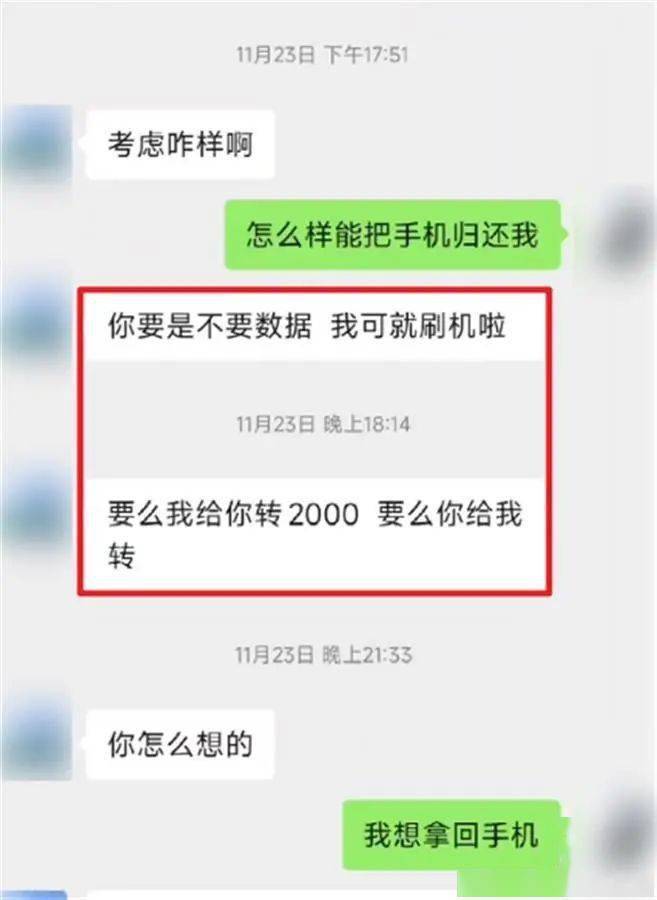 12月2日,张同学表示,她手机里面不但有重要资料,还有其过世家人的照片,“他威胁我说,不给钱就刷机。”