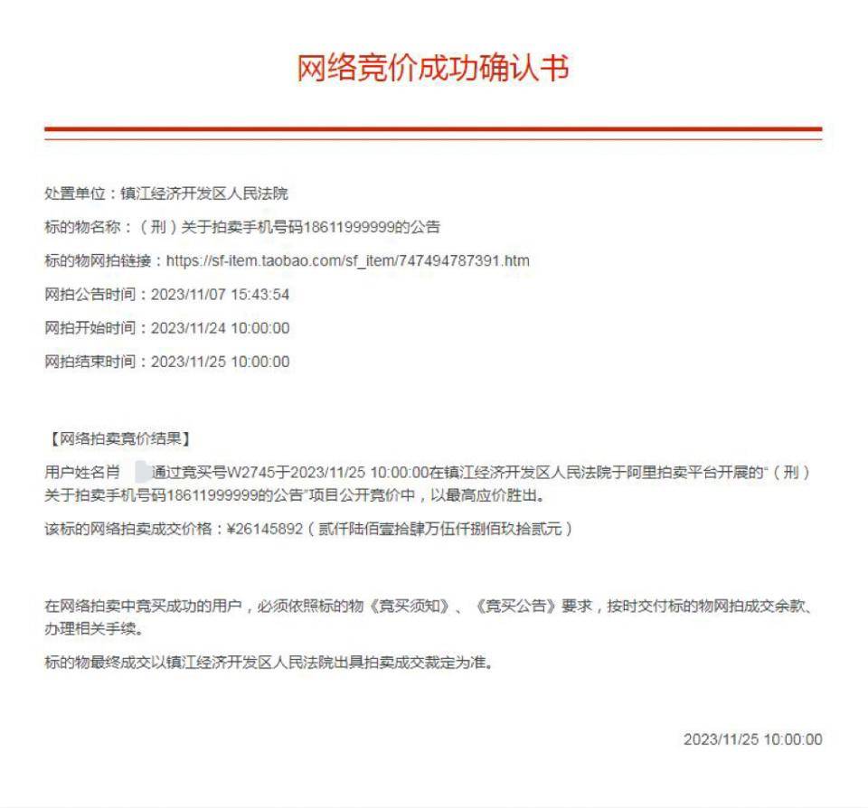涉案手机号拍出2614万高价后遭悔拍?多方回应