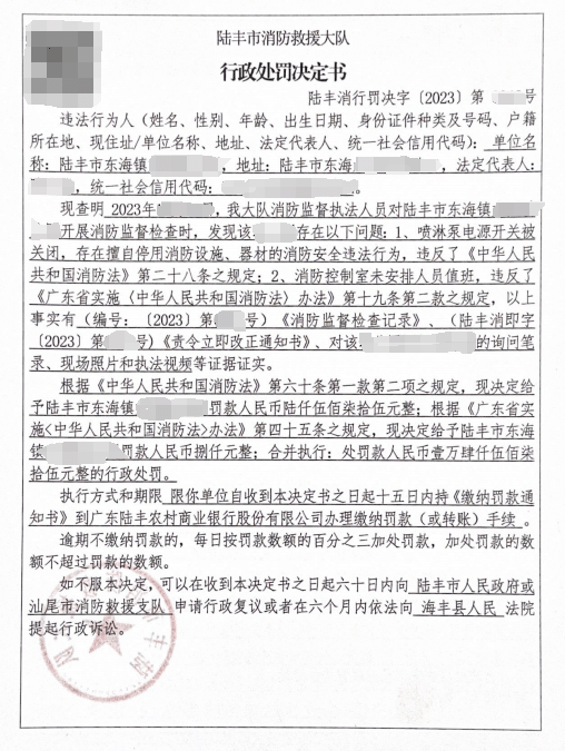 近日,陆丰市消防救援大队消防监督执法人员对陆丰市某幼儿园进行监督检查时,发现该场所存在以下问题:1、喷淋泵电源开关被关闭,存在擅自停用消防设施、器材的消防安全违法行为,违反了《中华人民共和国消防法》第二十八条之规定;2、消防控制室未安排人员值班,违反了《广东省实施<中华人民共和国消防法> 办法》第十九条第二款之规定,根据《中华人民共和国消防法》第六十条第二款之规定和《广东省实施<中华人民共和国消防法>办法》第四十五条之规定给予罚款。