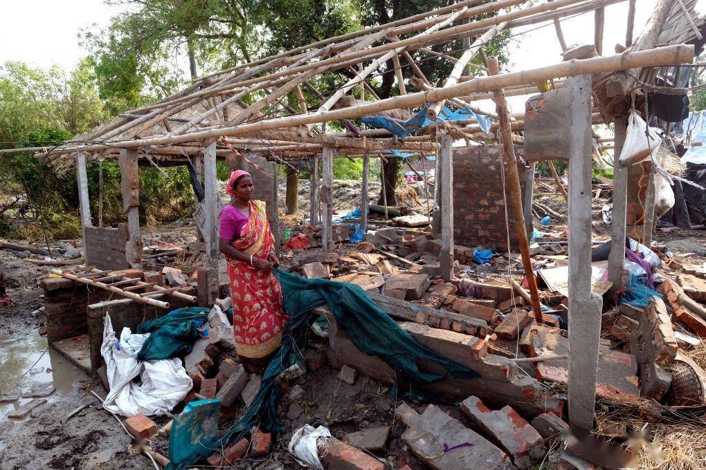 2021年5月29日,印度西孟加拉邦的一名女子站在被热带气旋“亚斯”毁坏的房屋废墟上。新华社发