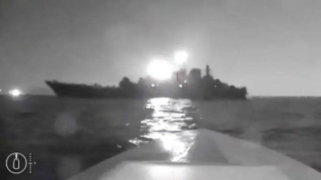 资料图:乌克兰无人艇袭击俄军舰的视频截图(来源:环球网)