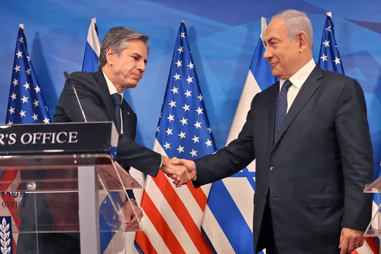 布林肯(左)内塔尼亚胡(右)