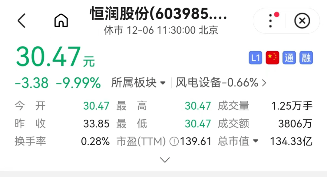 尽管业绩并不出众,但恒润股份自今年10月16日起股价出现连续大涨,短短10个交易日最高涨幅高达76%。12月6日开盘,恒润股份再陷一字跌停,连收两个跌停板。