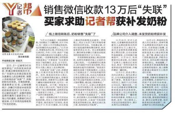 近日,《Y-记者帮》栏目收到多位广州市民发来的求助,称通过微信转账的方式,在广百超市北京路店购买名为美素佳儿的品牌奶粉,销售人员收钱后却“失联”了,所购奶粉也未发货。