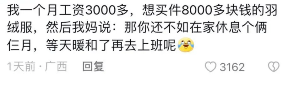 有那一瞬间我开始怀疑自己,是不是我真的不够努力,怎么连一件喜欢的羽绒服都买不起?