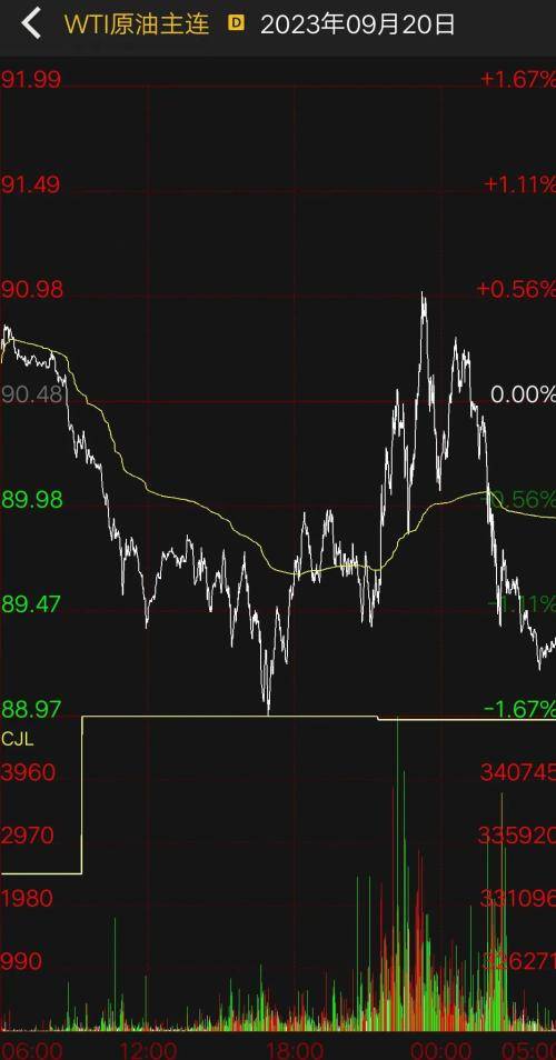 国际油价承压走低。截至当天收盘,WTI原油期货10月合约收于90.28美元/桶,跌幅为1.01%;布伦特原油期货11月合约收于93.53美元/桶,跌幅为0.86%。